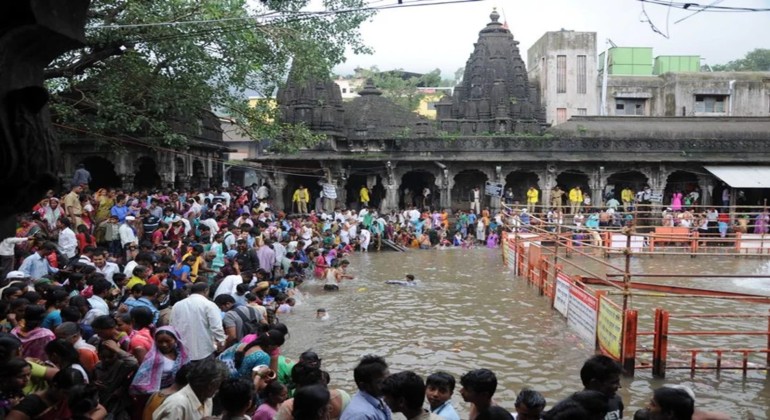 The village of Trimbak, 36 kms from Nashik, is famous for the Trimbakeshwar Temple and as the source of the Godavari River. Trimbakeshwar enshrines one of the 12 jyotirlingas dedicated to Shiva and this one is considered to be the main jyotirlinga. Legend has it that Guatam Rishi performed a rigorous ritual of prayer and penance or tapasya to Shiva on Brahmagiri Hill which rise above the present-day temple. Pleased with this devotion, Shiva is said to have blessed him and brought down to earth from heaven the sacred rivers of Ganga, Gautami and Godavari. This temple was built by late Mr. Odhekar, a knight serving with Peshwas. There are great processions and utsav on Ramnavami, Dasara and Chaitra Padwa (Hindu new year day). The specialty of the temple is that it was built with black stones. It is said that anybody who visits Tryambakeshwar attains salvation. There is no sacred place like Tryambakeshwar, no river like Godavari, no mountain like Brahmagiri etc. The reasons for its being so sacred are - Godavari river originates in this place, its a place of Tri-Sandhya Gayatri, the birth place of Lord Ganesha, a place of the first Nath of Nath Sampradaya consisting of Gorakhnath and others, a place where Nivrittinath was made to imbibe the holy knowledge by his Guru Gahininath, a place where Nivrittinath made his brothers and sister attain the self by his preaching. This is the holiest place to perform Shraddha ceremony.